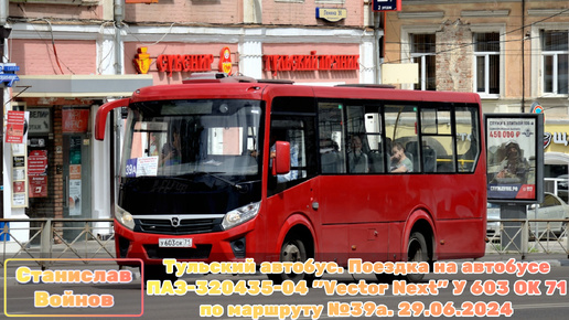 Тульский автобус. Поездка на автобусе ПАЗ-320435-04 "Vector Next" У 603 ОК 71 по маршруту №39а. 29.06.2024