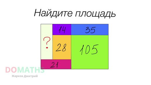 Долго не мог найти простой способ решения, а потом придумал за 5 минут и решил показать: задача на площадь