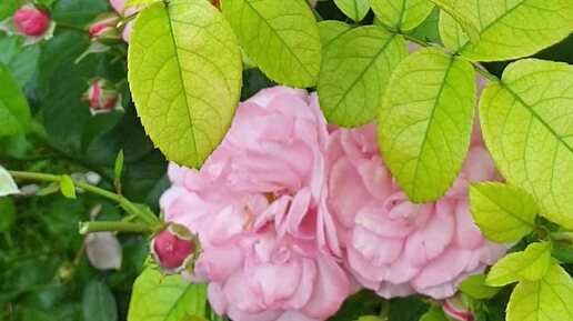 Хлороз на побегах роз после затяжных дождей.