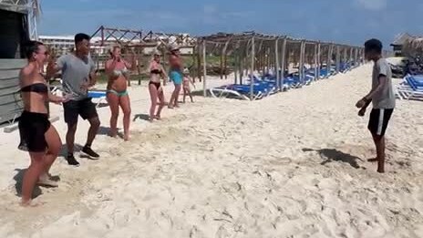 Отель Woovo Playa Hermosa Cayo Paredon Resort 5* Куба. Анимация на пляже танцуют зумбу.