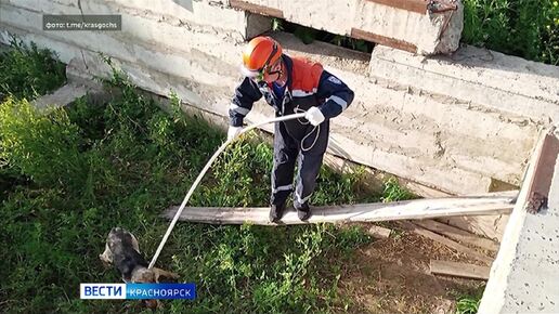 В Шарыпове из подвала недостроенного дома спасли бездомного пса