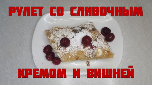 Рулет со сливочным кремом и замороженной вишней.