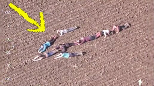 Дети легли на землю в виде стрелки, тогда полицейские на вертолёте понимают почему они это сделали.