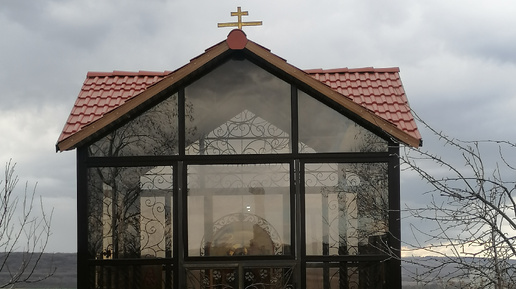 Часовня с камнем и иконой "Моление о чаше" в храмовом комплексе Петра и Павла в Ессентуках.
