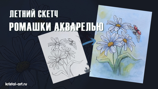 Как нарисовать ромашки акварелью #watercolor #акварель #акварельныйскетч #цветыакварелью