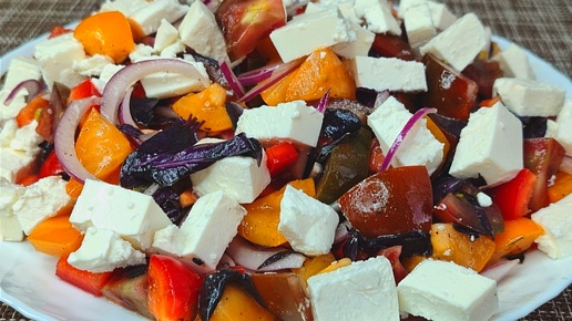Лёгкий салат из помидор с фетой. По настоящему летний.