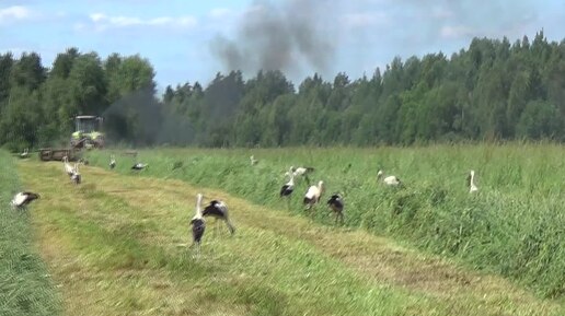 30.06.2024. Бригада аистов промышляет на сенокосе. Ленинградская обл. (видео автора канала)