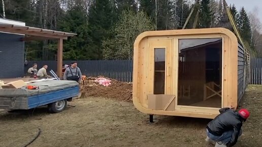 Обустройство предбанника в мобильной бане. Монтаж лежанки и чайного уголка
