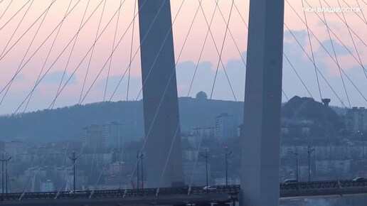 Владивосток Золотой мост утром.Russia city Vladivostok Golden bridge in the morning.