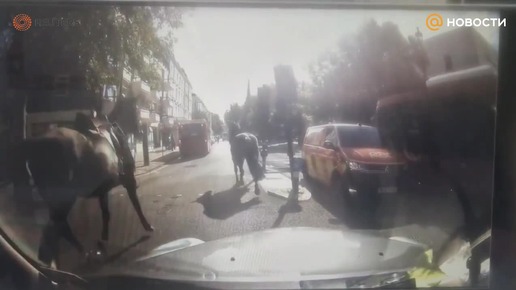 Военные лошади сбежали от конюхов в Лондоне