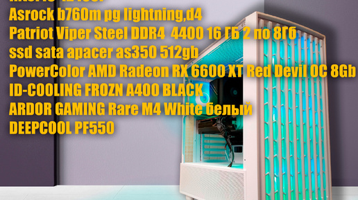 Калининград. Игровой компьютер. I5-12400F, DDR4 4400, 6600XT,ARDOR GAMING Rare M4 Wh. cyberpunk 2077