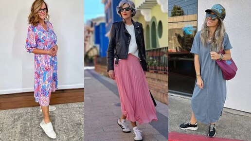 ПЛАТЬЕ С КРОССОВКАМИ УДОБНОЕ И МОДНОЕ СОЧЕТАНИЕ ДЛЯ ЖЕНЩИН 50+ 55+ 60+