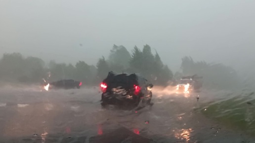 По пути домой попал в сильную грозу, шквальный ветер и град вынудил остановить машину