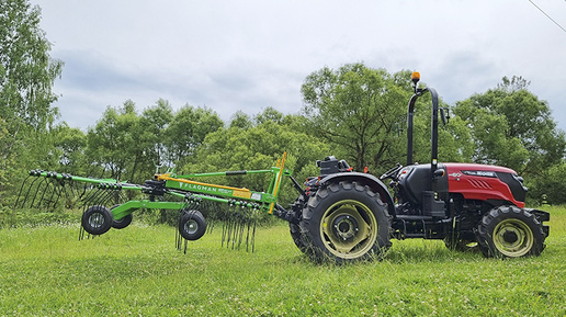 Трактор Solis-gold 60G с граблями Flagman в работе