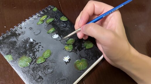 Урок по рисованию акрилом. Как просто нарисовать пруд с кувшинками