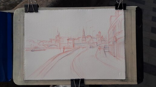 20240623 Берсеневская набережная в Москве. натурный этюд, акварель