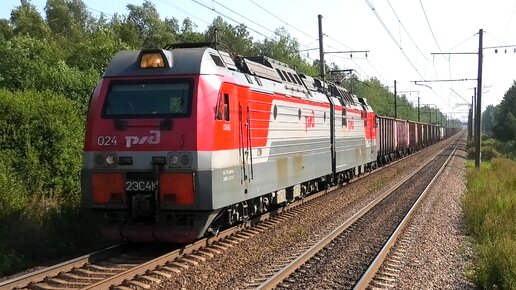 2ЭС4К-024 "Дончак" с грузовым поездом следует через о.п. Русановская