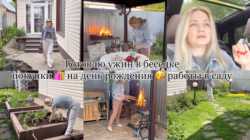 Готовлю ужин в беседке😍Закупка 🍞🧅🥩Привожу участок в порядок🧹сажаю томаты обработка сада, розарий 👒🌹