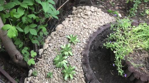 Каменная горка с молодило. Расчищаю каменные дорожки. Смородина пошла в рост