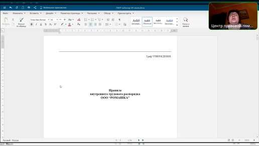 Вебинар Правила внутреннего трудового распорядка