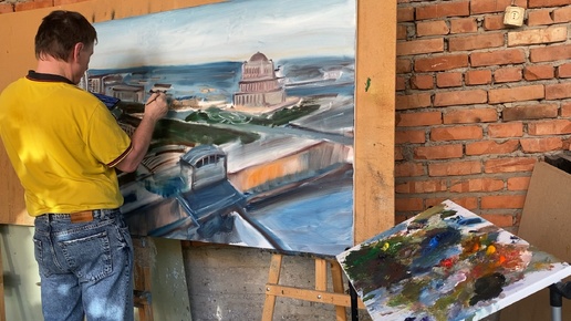 Подмалевок. Центр Грозного, резиденция Главы, Дворец Догуна Омаева, Сунжа, масло/холст 100 на 150 см