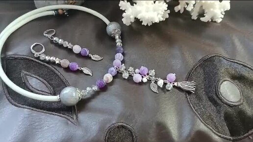 "Фиолетовый агат"-комплект украшений ручной работы.