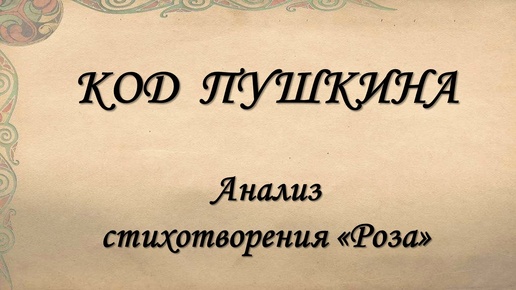 КОД ПУШКИНА. Анализ стихотворения "Роза". Автор текста и рассказчик Виктория Лебедева