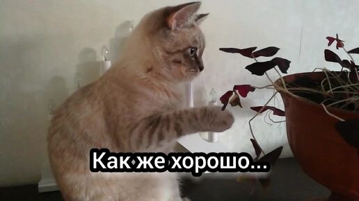 Ох,уж эти котята! София любит есть кисленькие листочки цветка "Бабочка" (Оксалис) кислица
