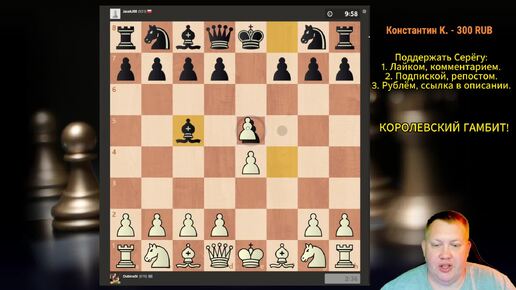 Королевский гамбит от Романа. Пример жертвы двух слонов. Шахматы