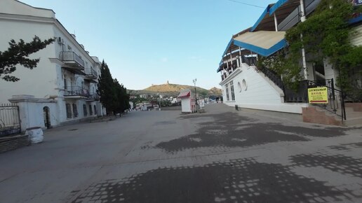 Утренняя набережная Назукина, пляж Лягушатник в Балаклаве, Севастополь, Крым.