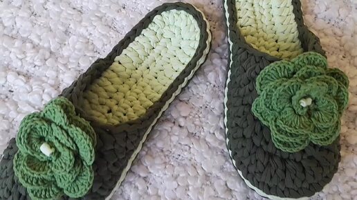 Тапочки из трикотажной пряжи.