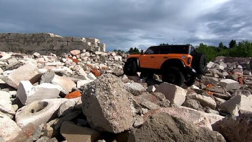 Кирпичный офф роад на радиоуправляемом внедорожнике Ford Bronco VI, сумасшедшие ходы подвески.