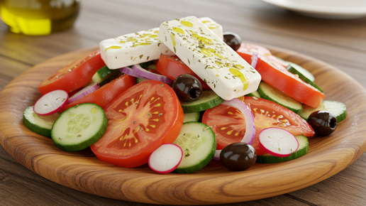 Греческий салат на новый лад: добавляем редиску и оливки - игра вкусов!