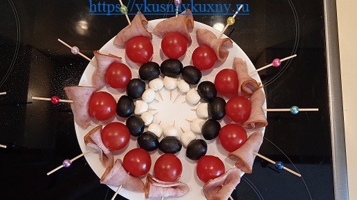 Канапе моцарелла с черри и маслинами
