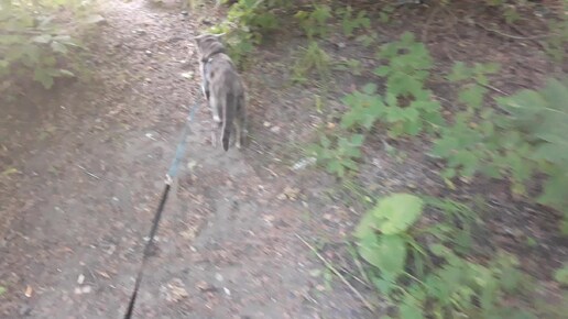 Гуляем с котиком с кустов на улицу.
