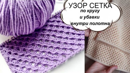 УЗОР СЕТКА ПО КРУГУ, 2 способа вязания без ступенек, убавки внутри полотна