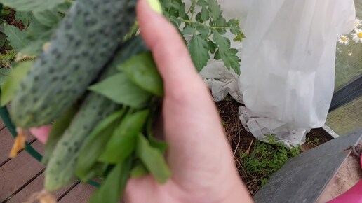 Дела на даче/Наконец-то дождались первый урожай огурцов.