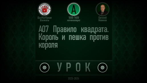 УРОК A07 Правило квадрата. Король и пешка против короля. Шахматы Обучение
