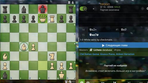 Крутая дебютная катастрофа в итальянской партии - белые делают мат на 15 ходу игры в прекрасном "ловушчатом" стиле. Шахматы для начинающих