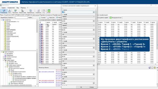 Запись-тарифного-расписания в СЕ207-СЕ307 ЭНЕРГОМЕРА