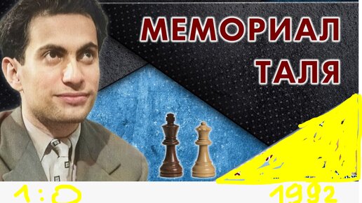 Красенков - Свешников, Москва, 1992. Мемориал таля располагает к красивой игре: белые жертвуют качество 21.♖xg7 и круто выигрывают, 1-0
