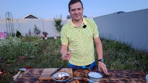 Крылья KFC, кальмары в кляре, картошка по деревенски в казане. Чесночный соус