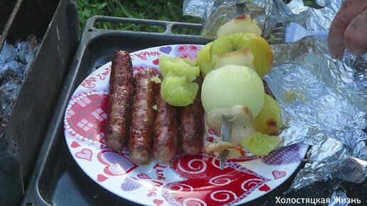 Готовлю Купаты на Новом Мангале. Картошкой в Фольге.