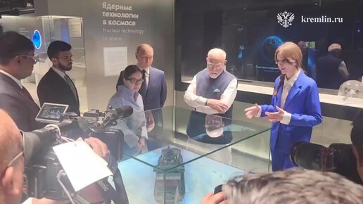 Путин и Моди осматривают павильон "Атом" на ВДНХ