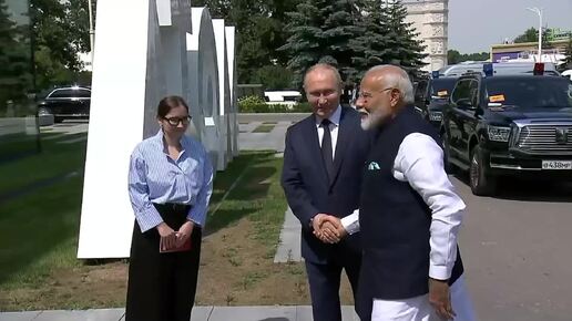 Путин и Моди осматривают павильон "Атом" на ВДНХ