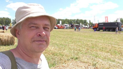 На поле машины, тракторы, люди