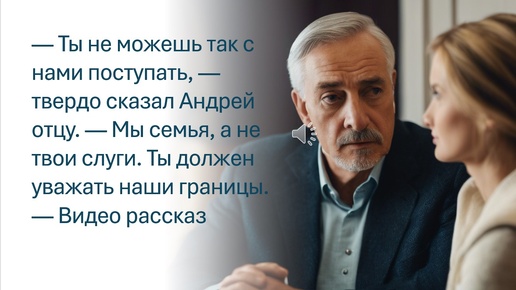 — Ты не можешь так с нами поступать, твердо сказал Андрей отцу. Мы семья, а не твои слуги. Ты должен уважать наши границы. Видео рассказ