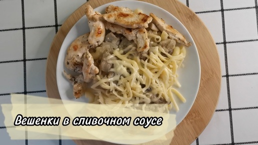 Вешенки в сливочном соусе и куриной грудкой.