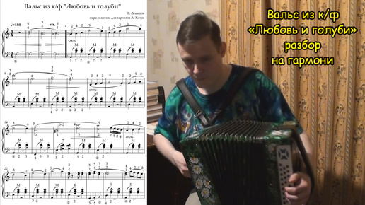 Вальс из к/ф "Любовь и голуби". Переложение для гармони 25*25 Котов А.В. Подробный разбор.