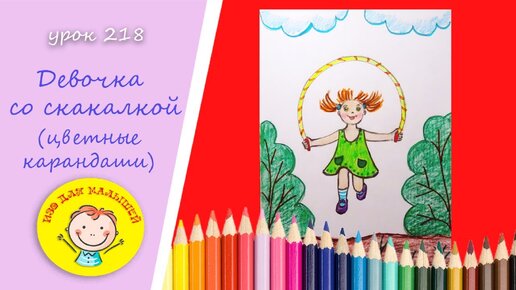 Как нарисовать ДЕВОЧКУ СО СКАКАЛКОЙ. УРОК 218 Тема: "девочка со скакалкой"- цветные карандаши